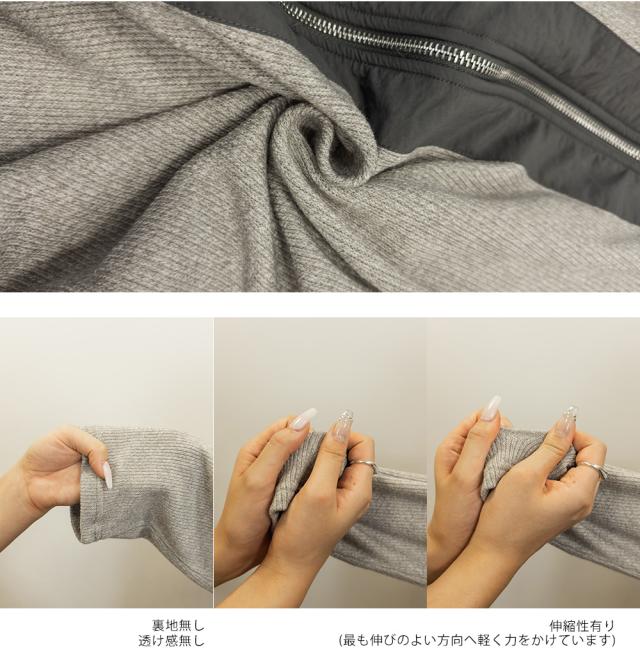 本体:裏地無し、透け感無し、伸縮性有り / 別布部分:裏地無し、透け感無し、伸縮性無し 04グレー,05ブラック