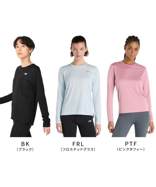 ニューバランス Tシャツ レディース ブランド 吸汗速乾 長袖 Tシャツ ウィメンズ 吸湿 速乾 吸汗 吸水 ドライ シンプル ワンポイント ロゴ ティーシャツ スリット スタンダードフィット 夜間 早朝 リフレクトロゴ 反射材 BK ブラック FRL フロステッドグラス PTF WT41225