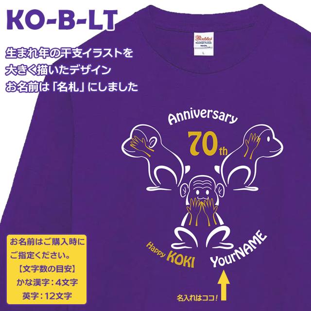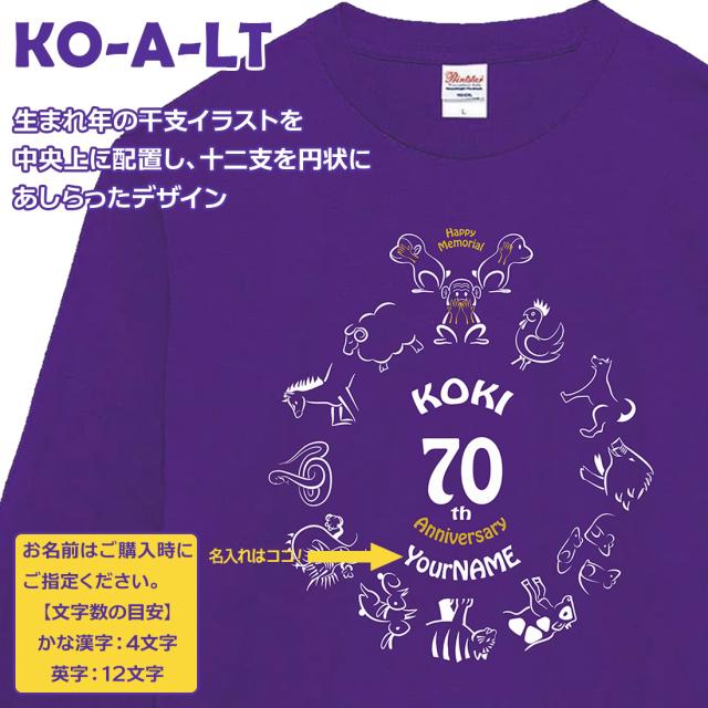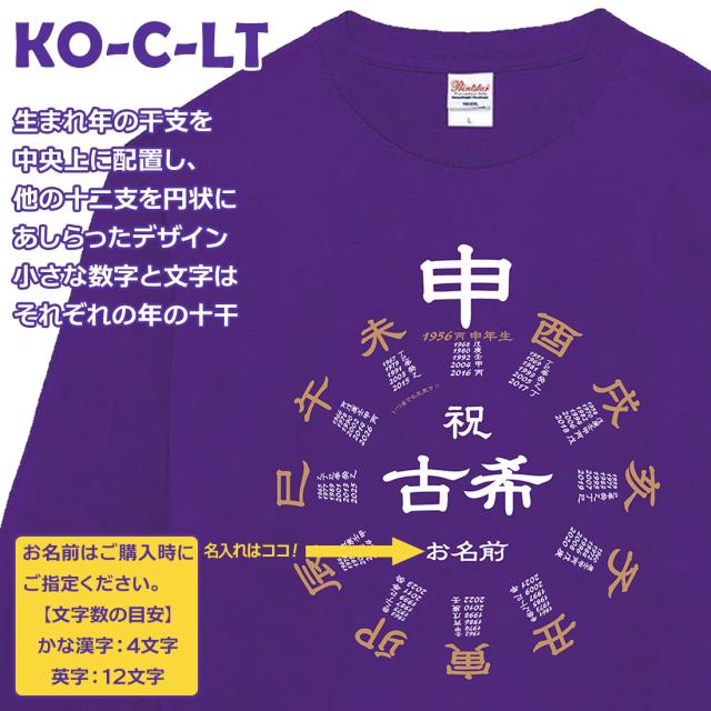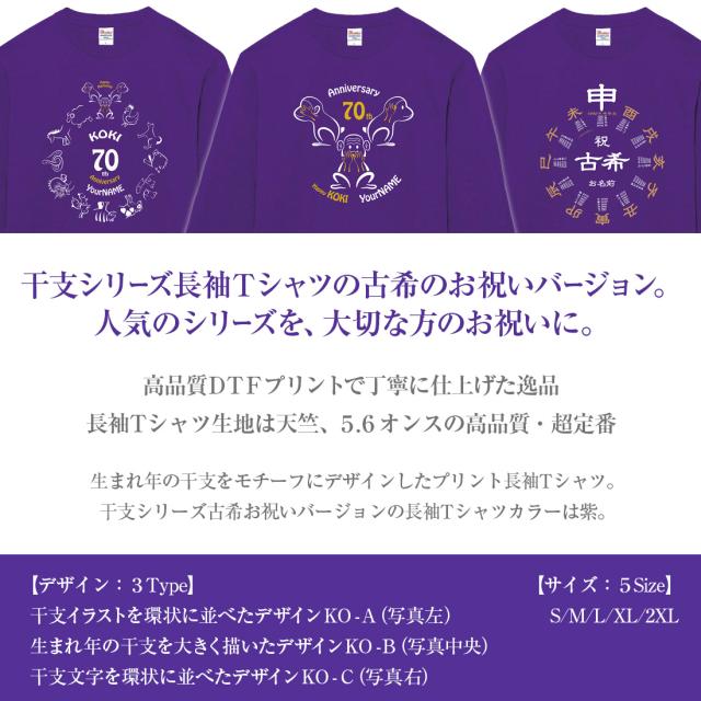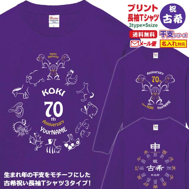 古希Tシャツ 名入れ 長袖 Tシャツ 干支シリーズ 古希 70歳 古希祝い お祝い tシャツ おしゃれ プリント プレゼント ラッピング 紫 パープル サプライズ メンズ レディース 男性 女性 父 母 上司 メール便 送料無料