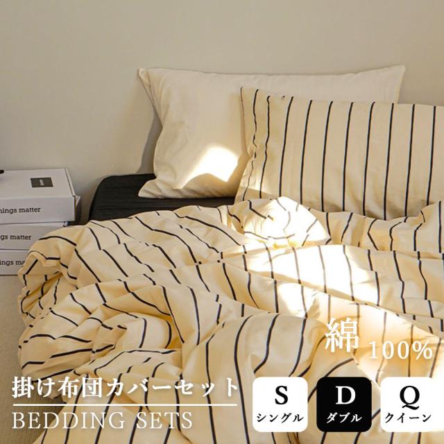 布団カバー シングル 3点セット セミダブル 4点セット ダブル クイーン 綿100% かわいい ins風 シックシンストライプ 夏用 シアサッカー 春用 寝具 洗濯 ふとんカバー 枕カバー 柔らか 通気 無地 可愛い 掛け布団カバー 北欧 韓国 おしゃれ 一人暮らし 誕生日 プレゼント 2025