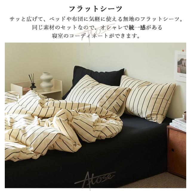 当商品に付属している「フラットシーツ」は、ベッドのサイドに垂らしたり、マットレスの下に折り込んでお使いいただけるタイプです。
