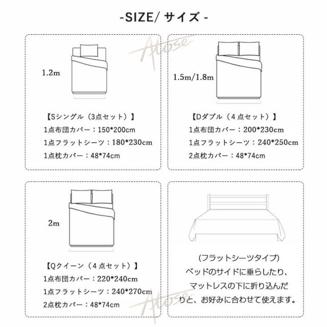 ・こちらは掛け布団カバー、ベッドシーツ、枕カバーのセット販売です。