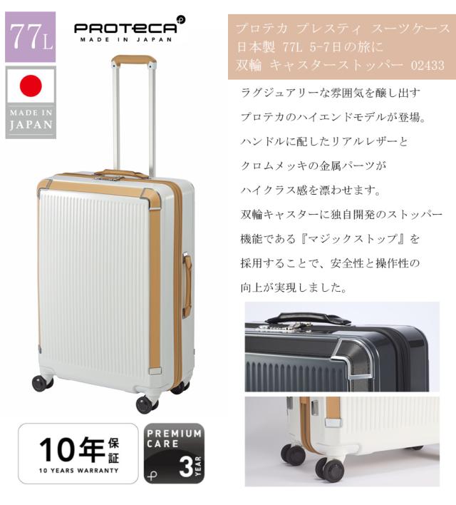 プロテカ PROTECA プレスティ キャリーケース スーツケース 77L 5泊 7泊 02433 ジッパー キャスターストッパー マジックストップ 双輪 サイレントキャスター TSダイヤルロック 日本製 受託手荷物対応 エース ACE