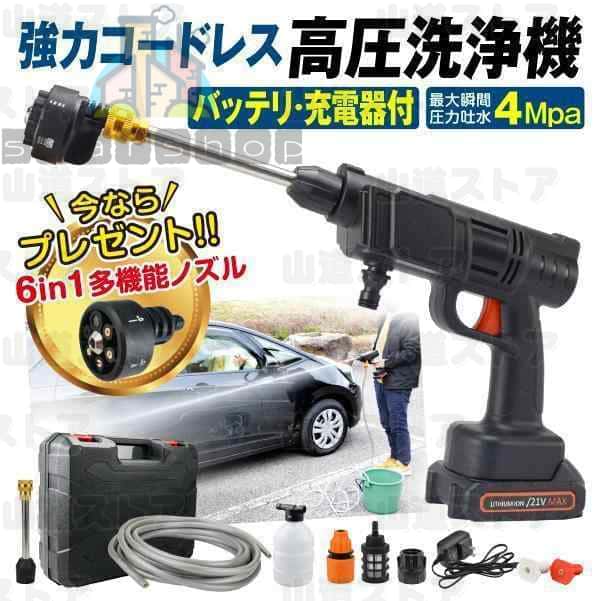 高圧洗浄機 充電式 6in1 21V バッテリー 充電器付 バッテリ互換 専用ケース付 家庭用 洗車 掃除 ベランダ バケツ給水 パワフルハンディ高圧洗浄機 小型 電動工具