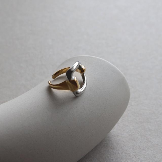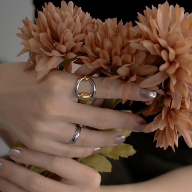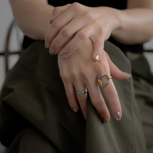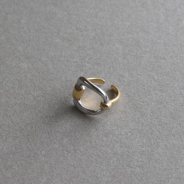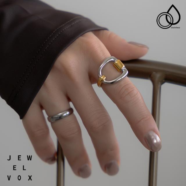 リング 指輪 ステンレス製 レディース 金属アレルギー ミックス バイカラー ゴールド シルバー ワンサイズ 14号 普段使い デイリー カジュアル 女性