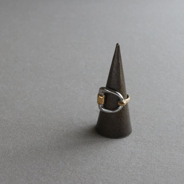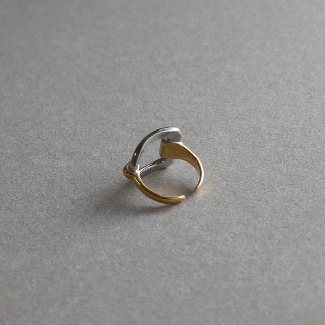 シルバーのD型オープンモチーフにゴールドのリングを組み合わせ、2色のコントラストが効いたモダンでスタイリッシュなデザイン。