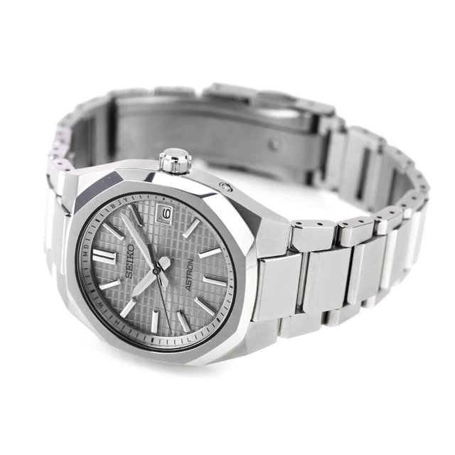 正規品 7年保証キャンペーン 送料無料 セイコー アストロン チタン 日本製 メンズ 腕時計 SBXY099 SEIKO ASTRON NEXTER アナログ グレーシルバー ◆Nexter ソーラー電波 金属多角縁モデルの造形を継承し、より小型化/薄型化を実現したコンパクトサイズモデルが登場。Nexter 金属多角縁のデザインコードを踏襲したエッジの効いた多角形状のチタン製ベゼル、ソリッドなケース造形、ケース/バンド一体型の先進的なフォルムが特徴。現行ソーラー電波キャリバー「7B62」を搭載することで、ケース径36mm/厚み8.7mmという薄型/コンパクトなサイズ展開が可能になり、凝縮された輝きを纏ったモダンで硬質感のあるモデルへとアップデート。ダイヤルには、多面カットを施したインデックスと三面カットの時分針、緻密なクリスタルボックスパターンを採用することで、コンパクトサイズならではの高級感のあるダイヤルデザインを実現。16mm幅のブレスレットに対応したコンパクトな「スマートアジャスター機構つき中留」を新規開発し、ケースからバンド、中留にかけてスリムなシルエットがスマートな印象。 発売日:2025年11月発売