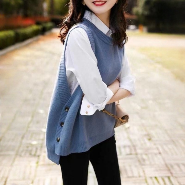 ニットセーター タンクトップ トップス ノースリーブ プルオーバー 無地 きれいめ ゆったり 大きめ レイヤード 40代 50代 60代 ワンピスター