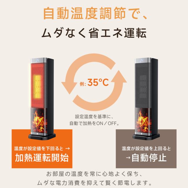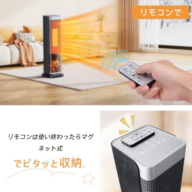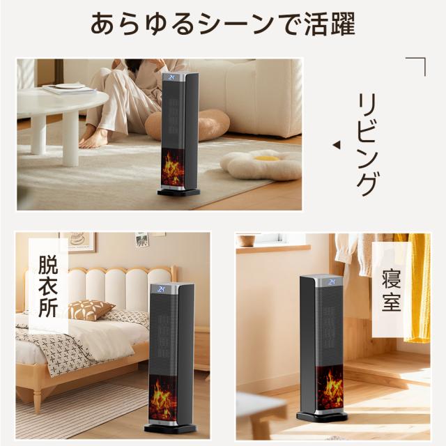【新発売!ご購入特典あり】セラミックヒーター 1秒速暖 ヒーター 電気ヒーター タワー型 3D 偽炎 電気ストーブ ファンヒーター 転倒オフ 過熱保護 ECO恒温運転 コンパクト 静音 タイマー 首振り リモコン付 800/1200W 持ち運びやすい