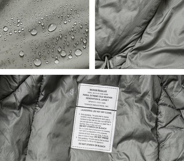 米軍 ECWCS 第三世代(ジェネレーション3)は7種類のトップスと5種類のボトムから構成された、様々な気候やシチュエーションに対応するレイヤリングシステムです。実物本物のLevel 7ジャケットです。しかも、なかなか見かけることの少なくなった未使用デッドストック!コントラクター別に選べるように「TENNIER INDUSTRIES,INC.」が製造したアイテムをセレクトしました!