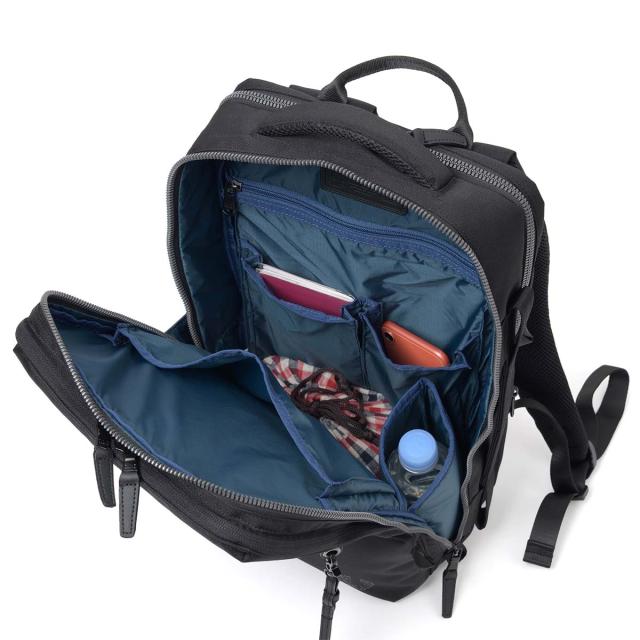 ・前面ポケット内装はオーガナイザー機能を持たせ携帯電話やペン、手帳などをまとめて収納。