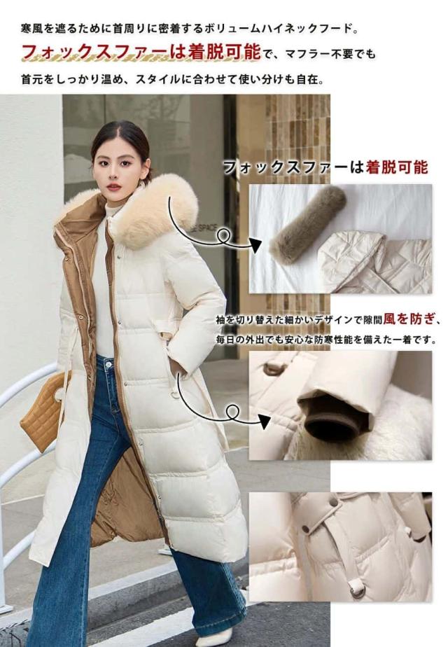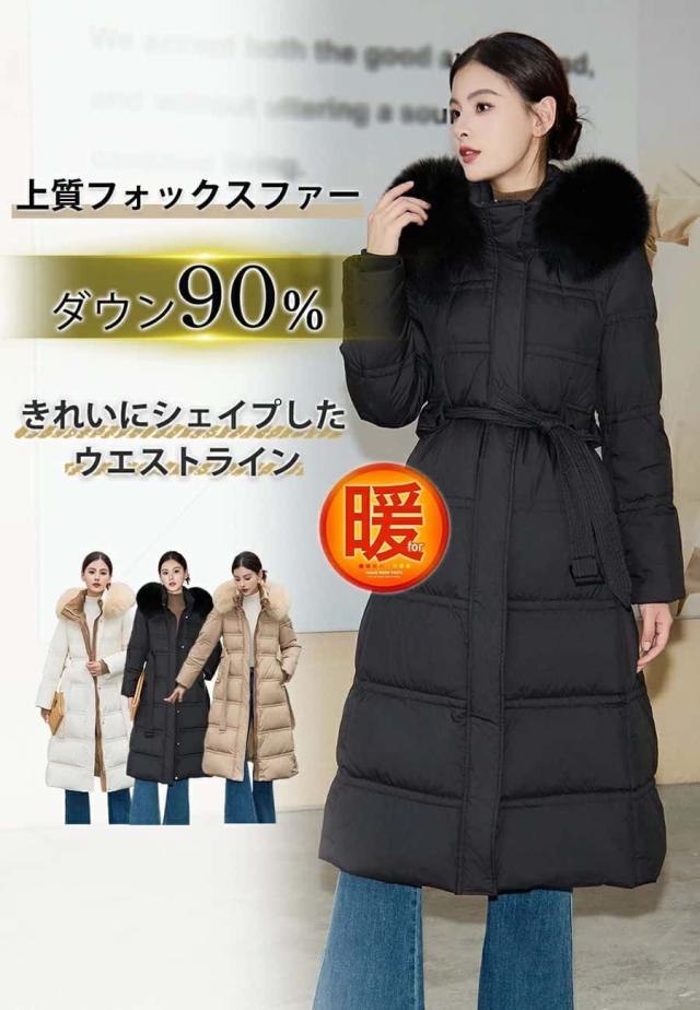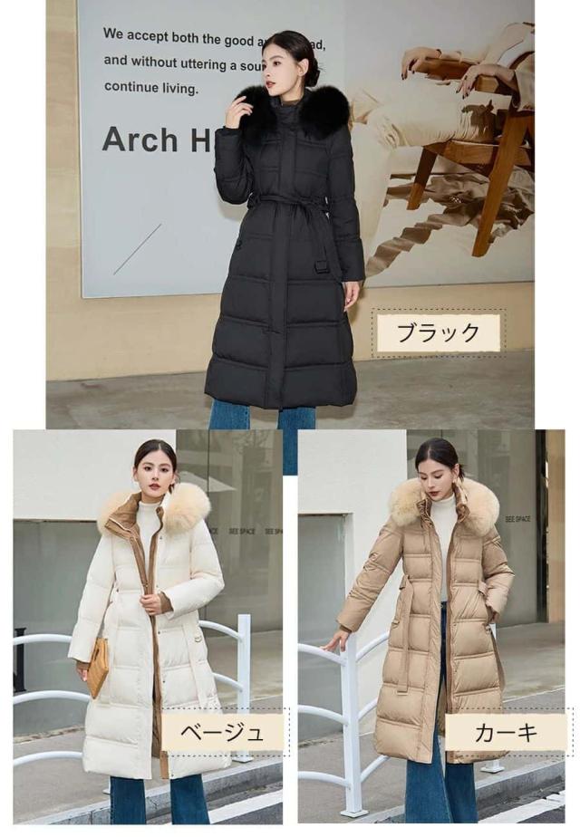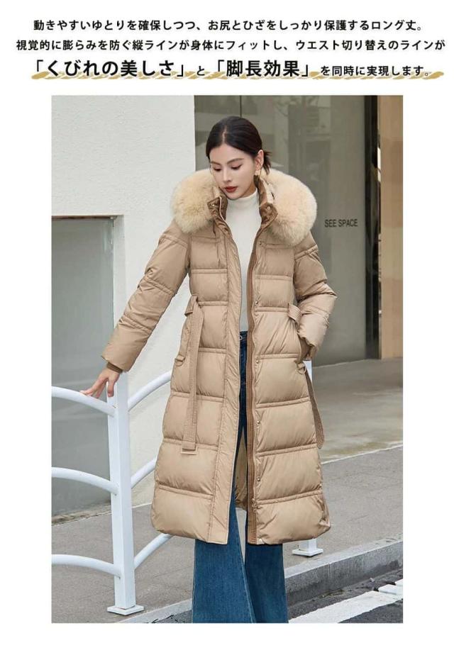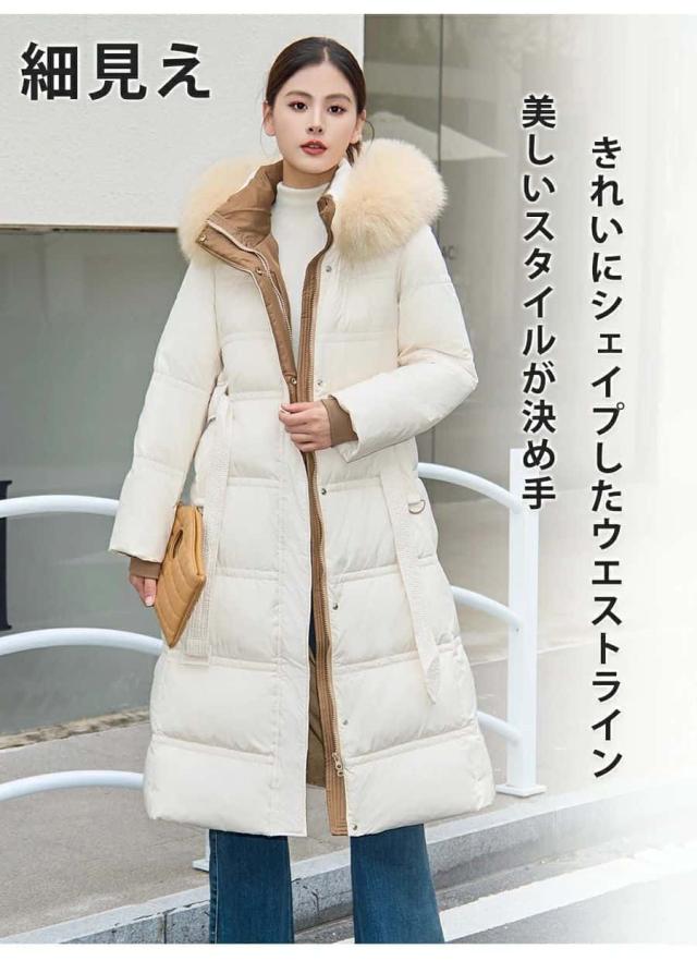 ダウンコートレディース ロングダウンコート ダウンジャケット ロングダウン アウターロングコート フォックスファー レディース ダウン90% 冬物 大きいサイズ 上品 防寒 ロング丈 暖かい 黒通勤 きれいめ 体型カバー 細見え