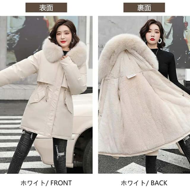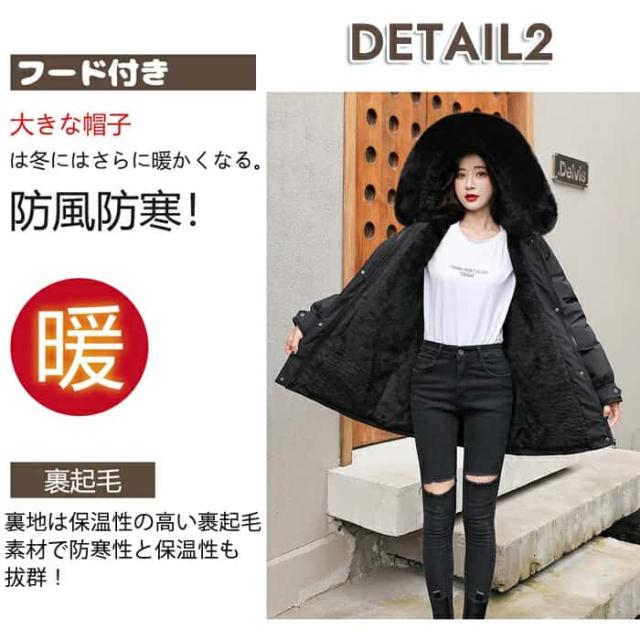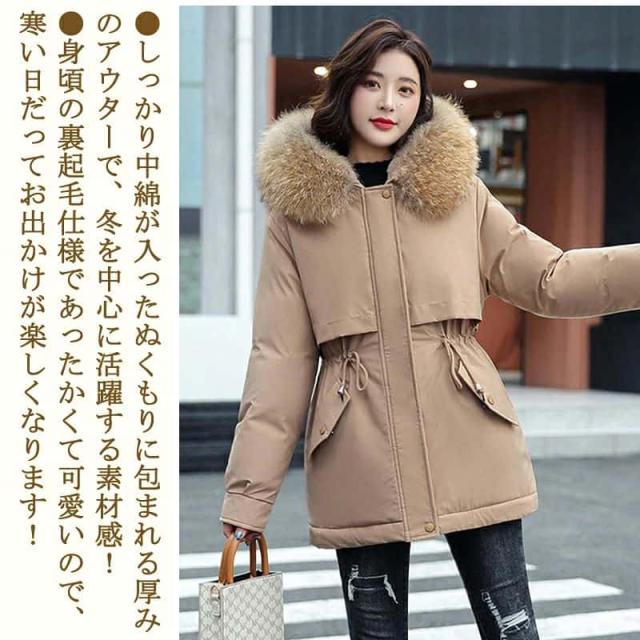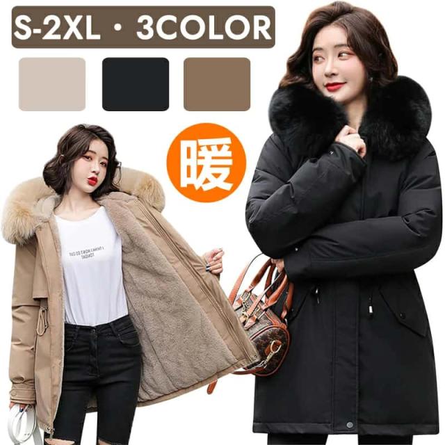 コート レディース 秋 冬 ジャケット アウター ボアフリース フード付き 中綿 ロングコート 中綿 ベンチコート 大きいサイズ S/M/L/LL/3L/ ブラック