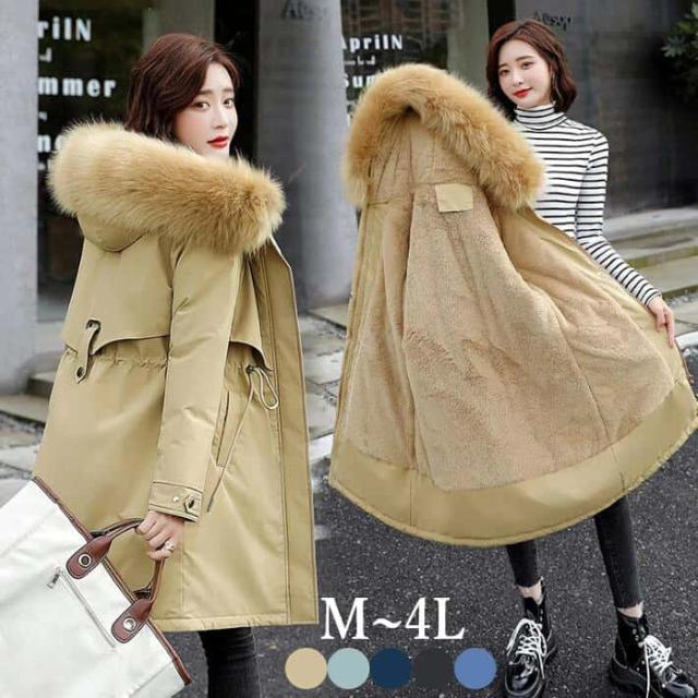 裏ボア ふわふわ もこもこ 防寒 中綿コート ダウン コート レディース 綿入れ 中綿 コート 中綿モッズコート フード付き ファー付き 大きいサイズ ミディアム丈 温かい 軽量 冬 M L 2L 3L 4L