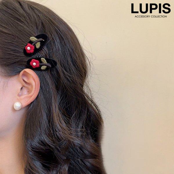 ヘアアクセサリー ヘアクリップ ミニ フラワー 刺繍 ベロア レトロ レトロガーリー 華やか 上品 大人っぽ 1個売り lupis ルピス