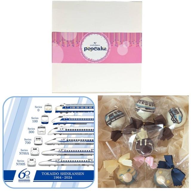 東海道新幹線開業60周年記念グッズとオリジナルポップケーキの当社限定セット。