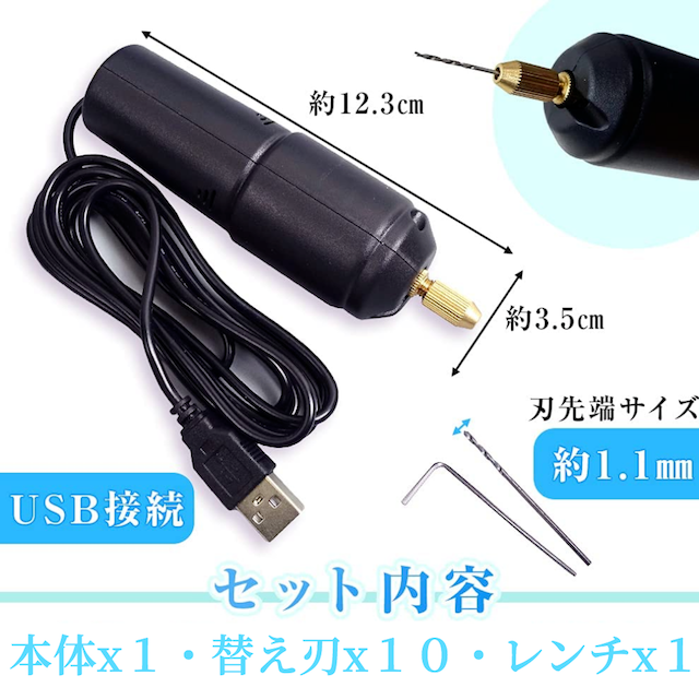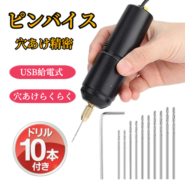 ★\スッ…と穴あけ/★ ピンバイス 電動 レジン 穴 開け 電動 【ハレゾラTBP公式店】 レジンドリル 穴あけ ガンプラ 改造 プラモデル 穴開け 工具 道具 ドリル レジンの穴開け USB給電式 ドリル 10本ビット付き