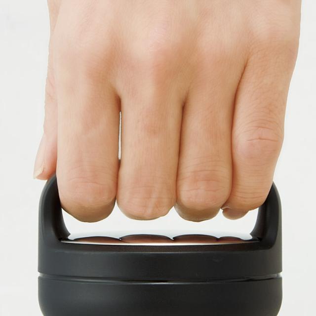 ハンドルに指を引っ掛けられるので、両手が塞がるほどの荷物が多い時でも持ち運べる便利な水筒です。カラビナなどを取り付けて吊り下げることもできるので、キャンプや登山などのアウトドアシーンにもおすすめです。