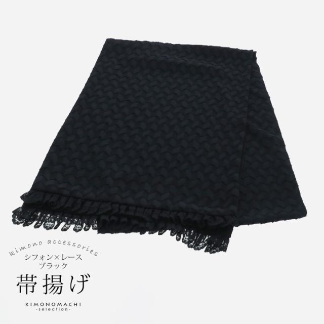 帯揚げ シフォン レース 単品「ブラック」ポリエステル 日本製 振袖 振り袖 振袖用 着物 成人式 和装小物 【メール便不可】