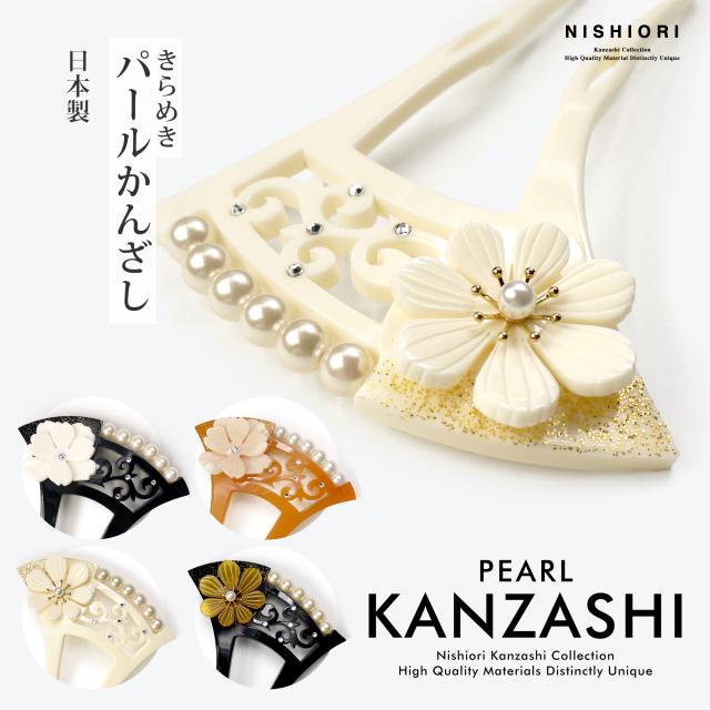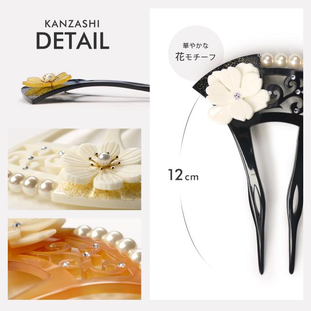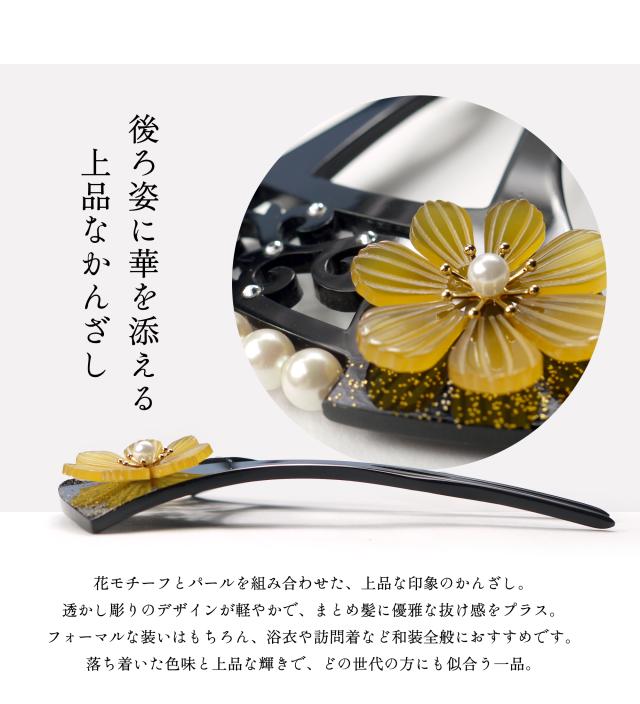 花モチーフとパールを組み合わせた、上品な印象のかんざしです。