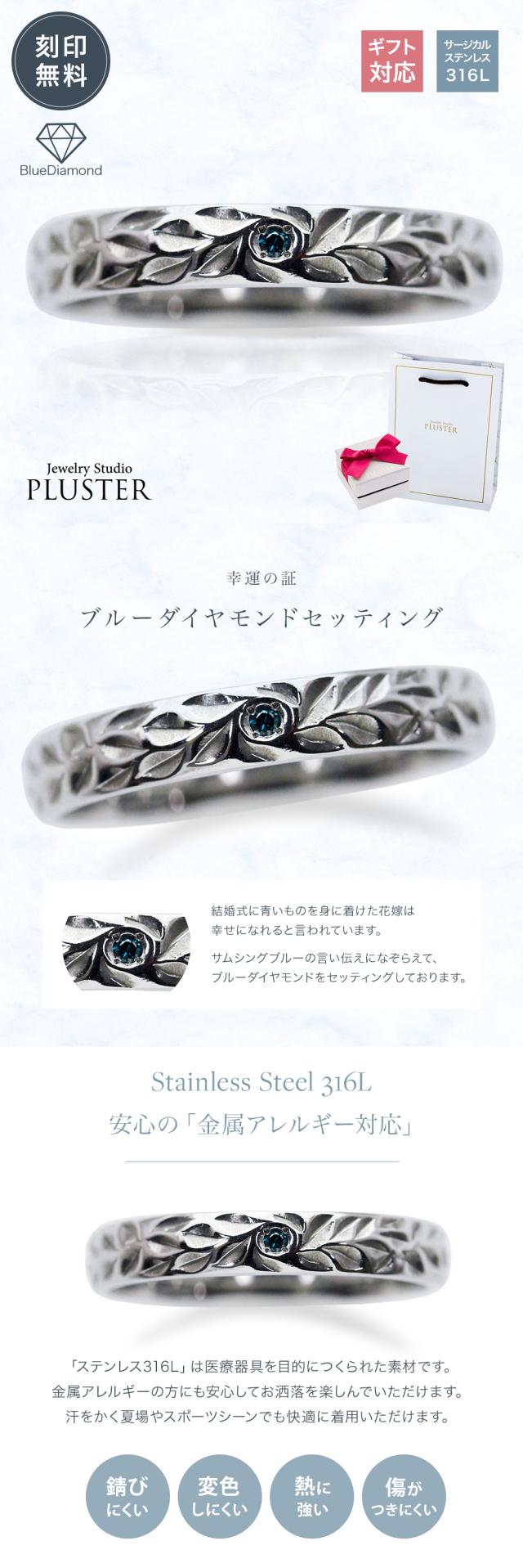 ペアリング ステンレス リング アレルギー対応 指輪 刻印 名入れ ブルーダイヤモンド ダイヤモンド ダイヤモンドリング サージカルステンレス 316L レディース メンズ 男女兼用 ペア カップル ステンレスリング お揃い 記念日 プレゼント 女性 誕生日 ギフト ホワイトデー