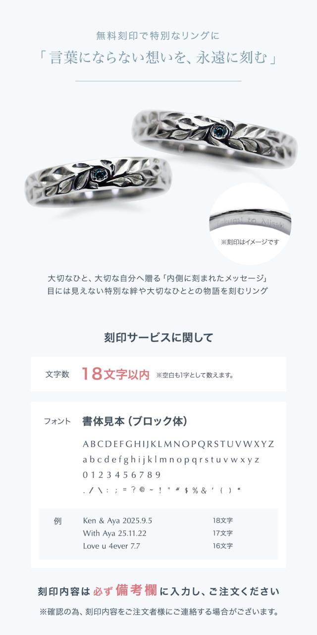 ※ペアでご購入のお客様は「男性用」「女性用」それぞれ刻印をご記載ください。