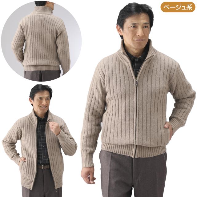 杢調のざっくりとした編地が特徴のフルジップセーターです。軽くて柔らかな肌触りで、心地よくご着用いただけます。サイドには便利なポケットが付いています。ネイビー系とベージュ系の2色組で 、幅広いシーンで活躍する一着です。ご自宅での手入れも簡単で、デイリーユースに最適です。