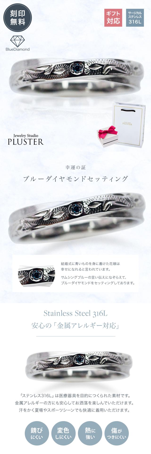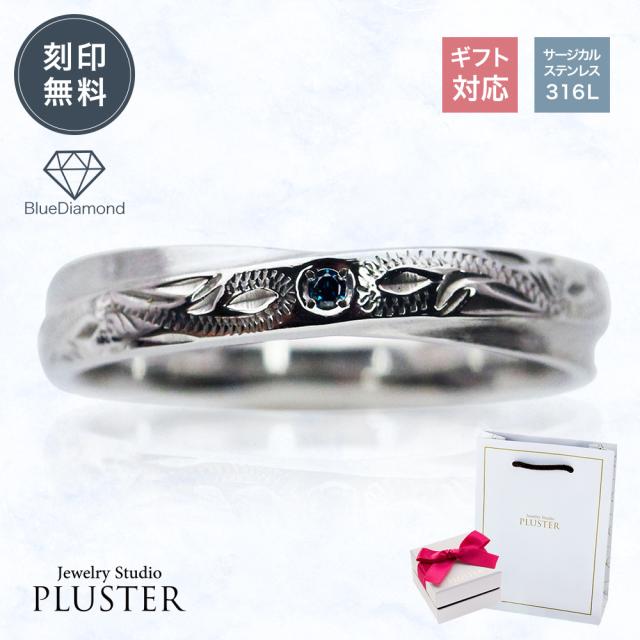 ペアリング ステンレス リング アレルギー対応 指輪 刻印 名入れ ブルーダイヤモンド ダイヤモンド ダイヤモンドリング サージカルステンレス 316L レディース メンズ 男女兼用 ペア カップル ステンレスリング お揃い 記念日 プレゼント 女性 誕生日 ギフト 母の日