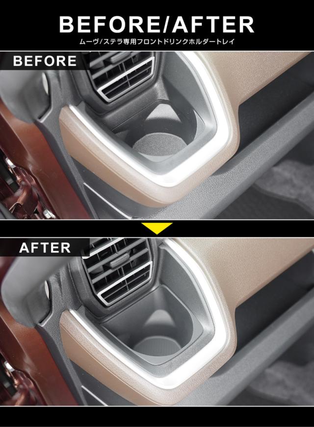 ダイハツ 新型ムーヴ スバル ステラ専用 フロントドリンクホルダートレイ 2P ブラック カスタム パーツ トレイ 小物入れ カー用品 防水 キズ防止 汚れ防止 内装 インパネトレイ ドレスアップ 社外品