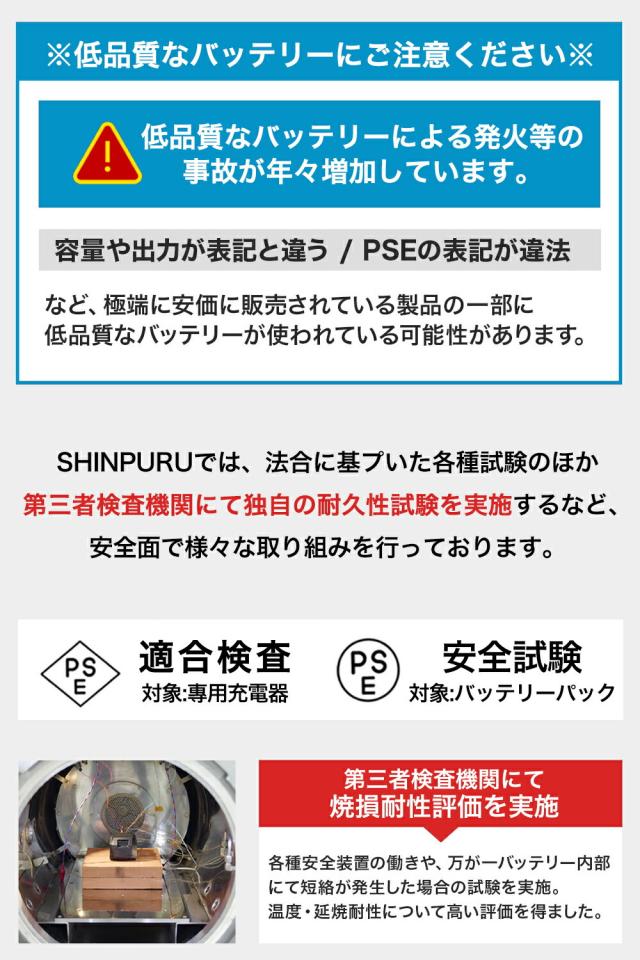 大容量3.0Ah電池と急速充電器を採用し。それはまた持っています過電流保護、過電圧保護、過熱保護、充電および放電保護により、耐久性があります。しかも、バッテリの残量表示や充電状態を明確に示すバッテリLEDもあります。