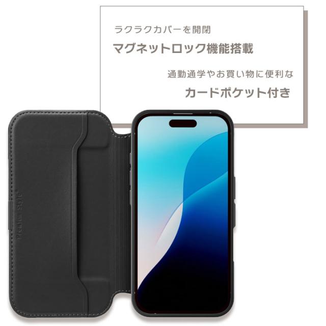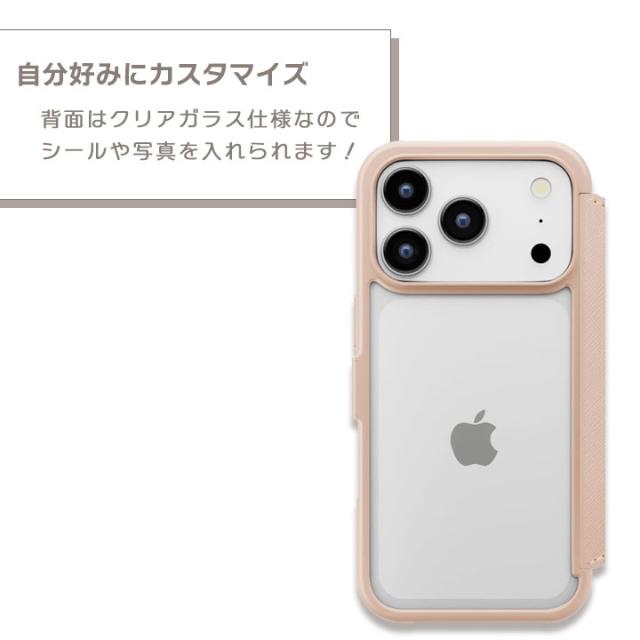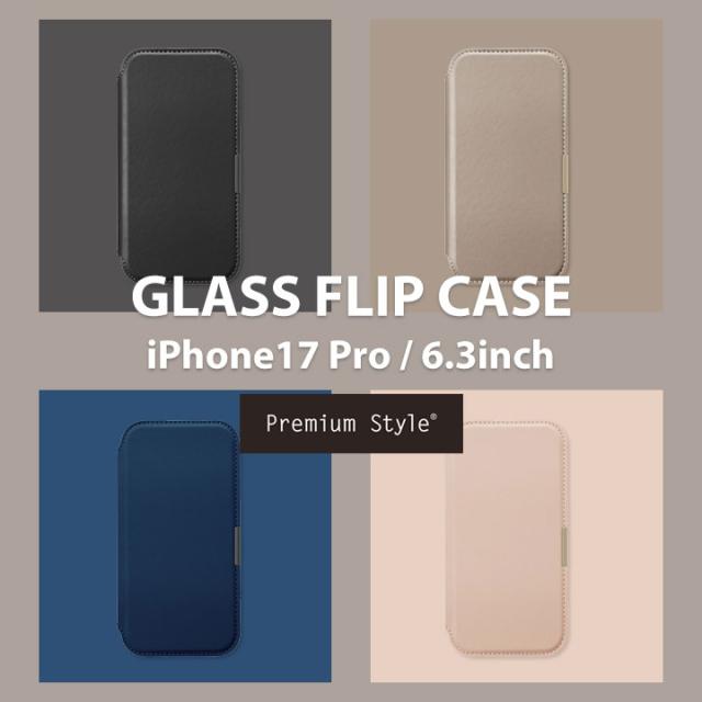 iPhone17Pro 6.3インチ ガラスフリップケース アイフォン ブラック ベージュ サフィアーノ調 ネイビー ピンク メール便送料無料