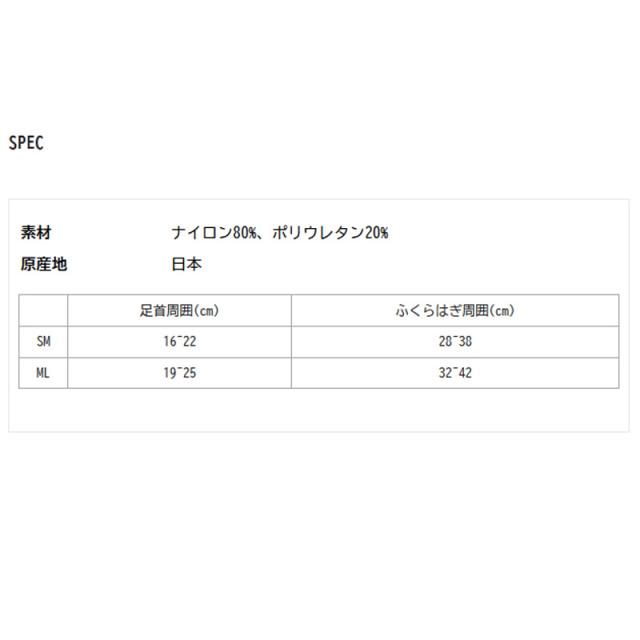 SM:足首周囲(cm)16-22、ふくらはぎ周囲(cm)28-38
