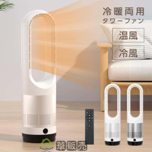 冷暖兼用 ヒーター 扇風機 羽なし 夏用 8段階涼風 3段階温風 扇風機 80°左右首振り 暖房器具 切タイマー ファンヒーター リモコン付 静音 タワーファン 冷暖風切替 11段階風量調節