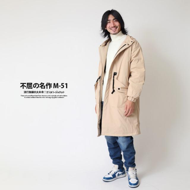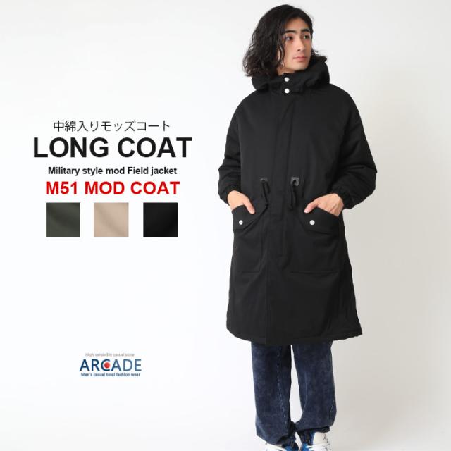 ロングコート メンズ ミリタリー モッズコート m51 M-51 秋冬 中綿 裏キルティング フードロングコート ドロスト ブラック カーキ M L XL
