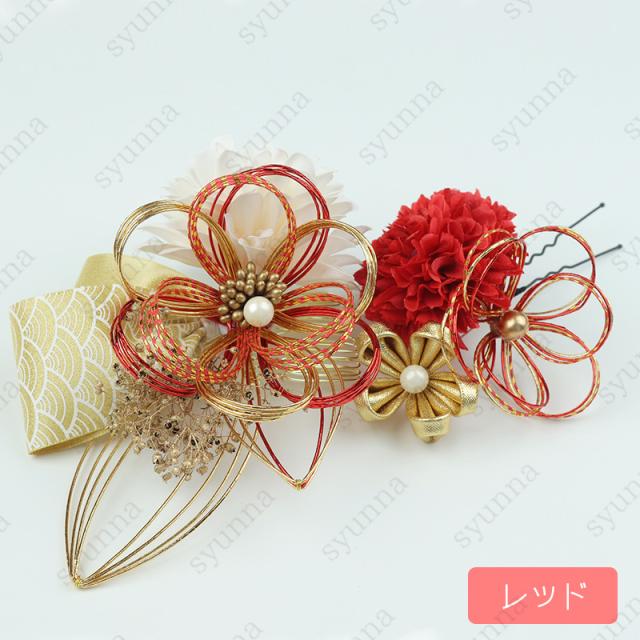 h191#髪飾り 2点セット 当日発送 3color ヘアアクセサリー 花 コーム Uピン 成人式 振袖 和装 つまみ細工 ちりめん おしゃれ 大人 レディース 髪留め 卒業式 袴