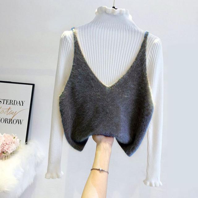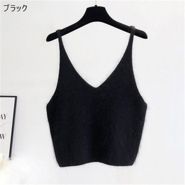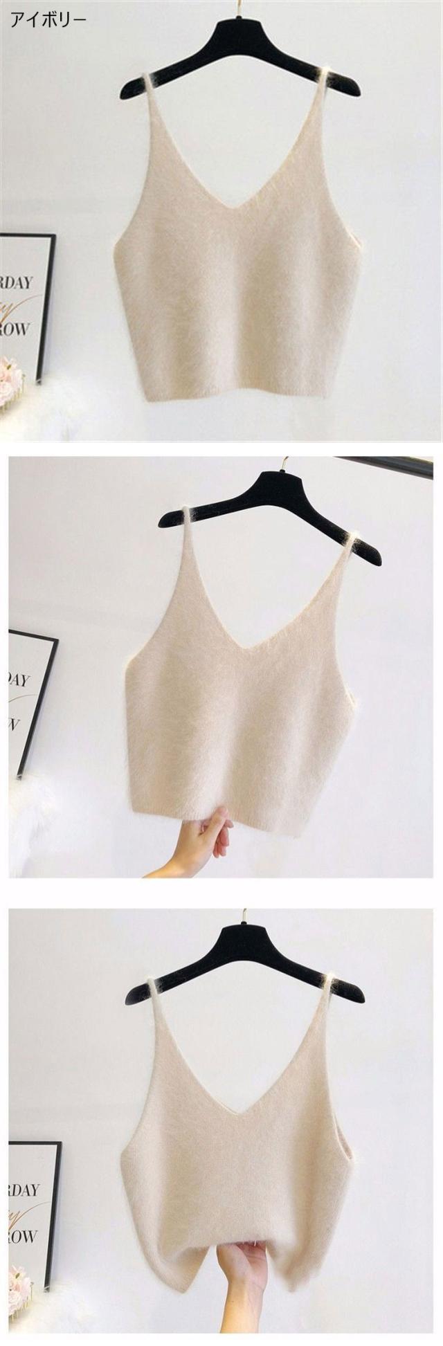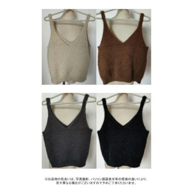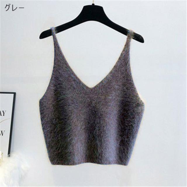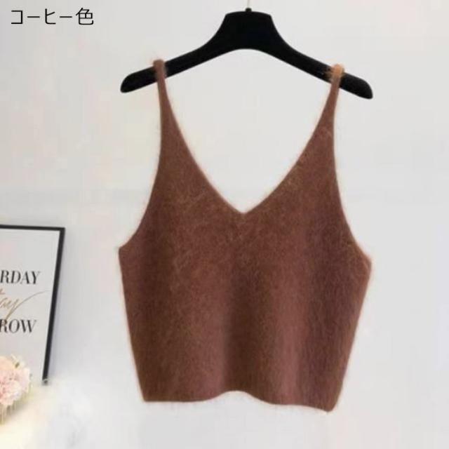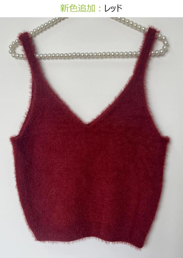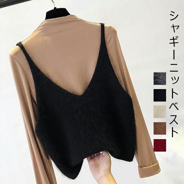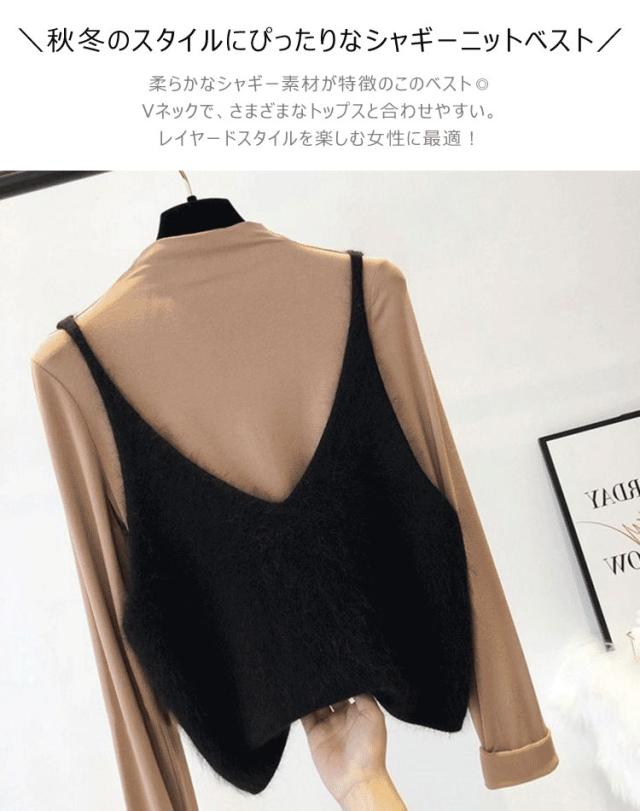 シャギー ベスト レディース Vネック ニット ビスチ ェ キャミソール トップス ニットベスト ショート丈 シャギーニット シャギーベスト Vネックベスト 秋冬 おしゃれ 無地 プルオーバー