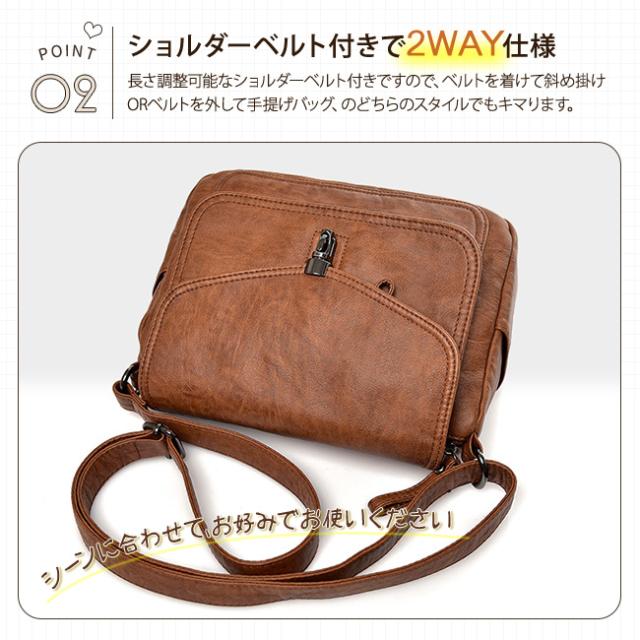 ショルダーバッグ レディース 男女兼用 革 2WAY 斜め掛け シンプル 軽量 柔らかい 肩掛け 大人 カジュアル おしゃれ 通勤 通学