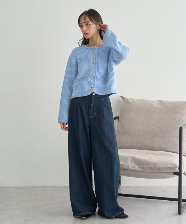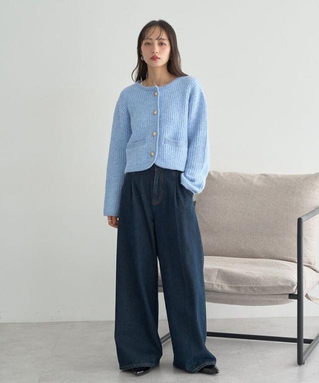 【WEB限定】ゴールド釦ショートニットカーディガン