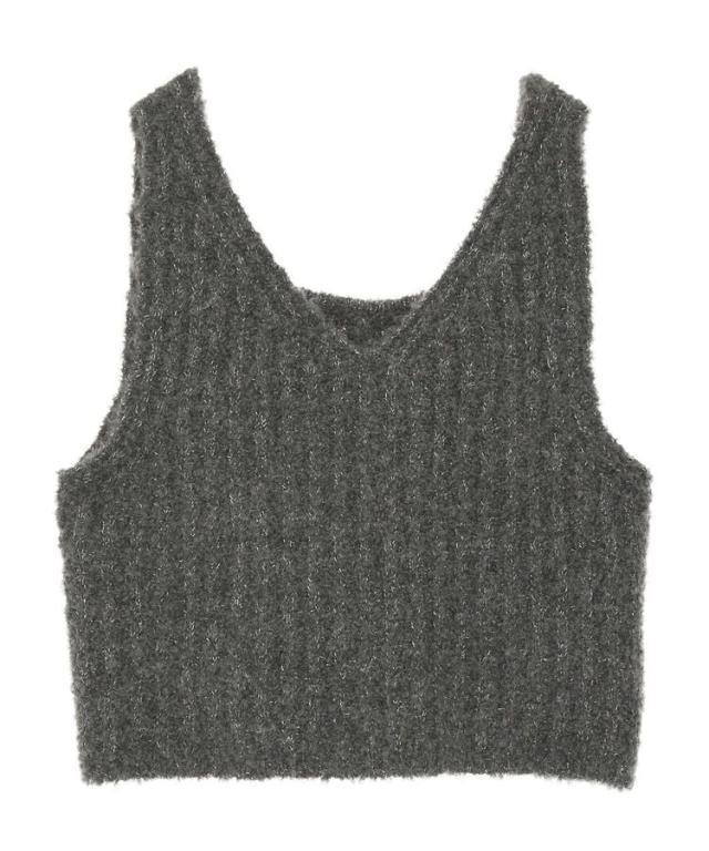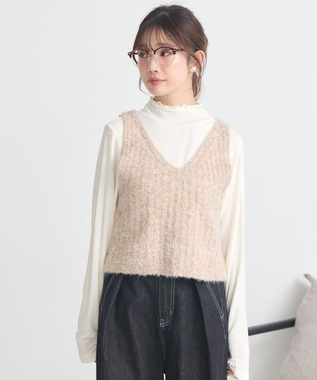 ふんわりと暖かな風合いのブークレニット素材で仕立てたビスチェ。ラメ糸を織り交ぜた豊かな表情がスパイスになり、ブラッシュアップした着こなしが完成します。短丈の旬フォルムでワイドパンツなどボリュームのあるボトムとも好相性。インに合わせるアイテムによってスタイリングの幅も広がるおすすめのプラスワンアイテムです。透け感[なし]