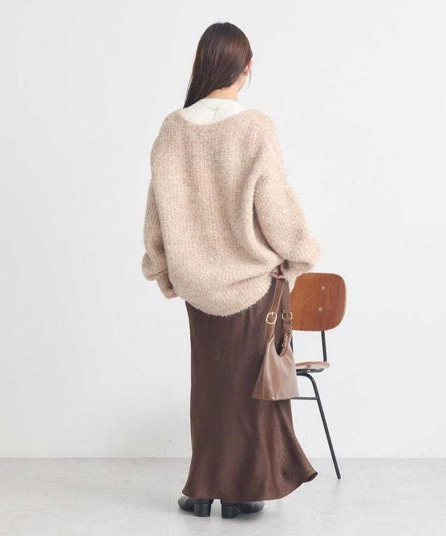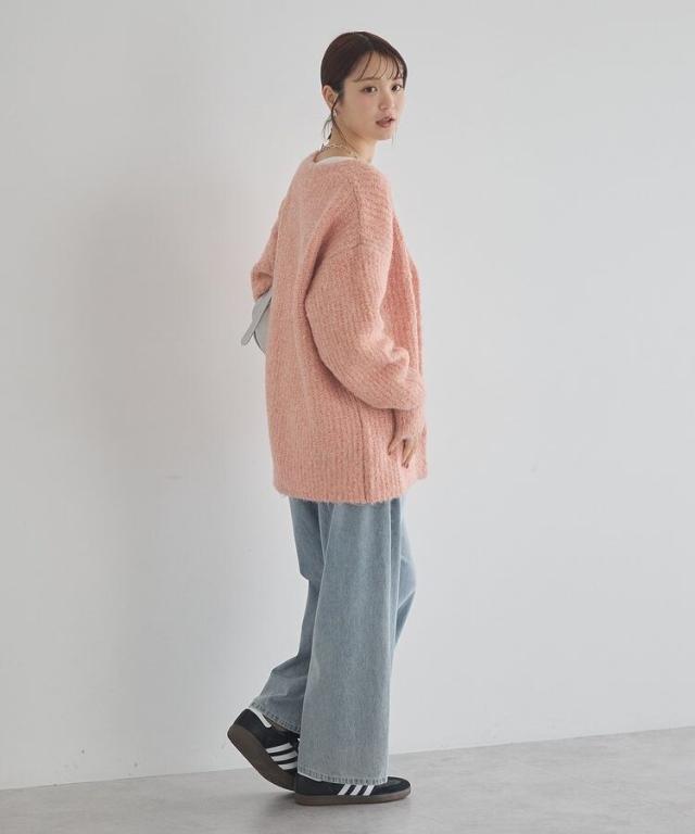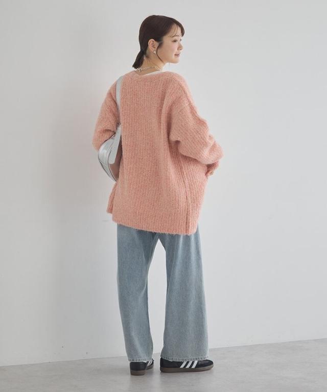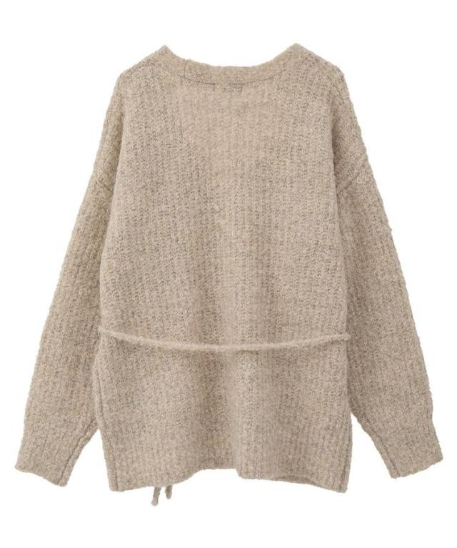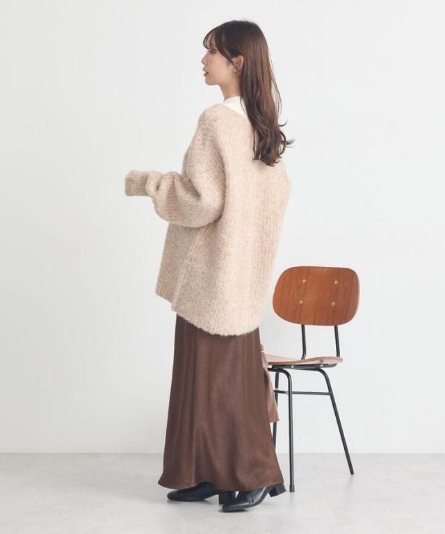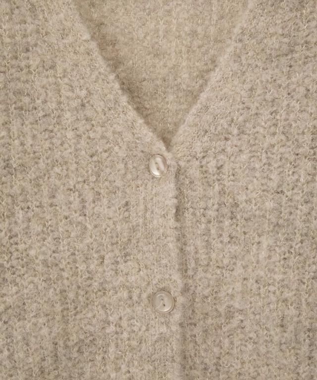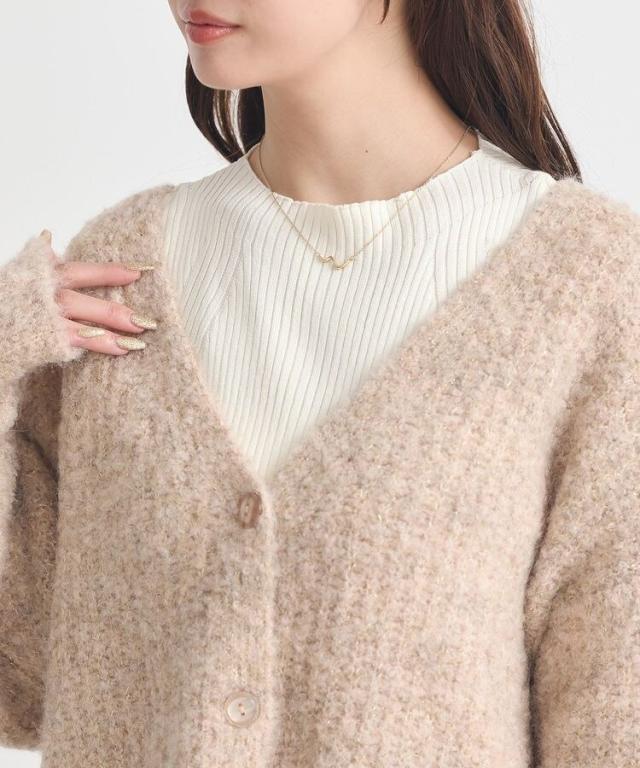 ループの凹凸感とラメ糸混合のニュアンスある配色が魅力的なブークレニットカーディガン。ゆったりとした丈感長めのラフな雰囲気がデイリースタイルにぴったりのデザインです。同糸を使用したコードベルトを付属し、ウエストマークでアレンジ出来る2WAY仕様。ボトムを選ばず様々なアイテムと合わせていただける着回しやすい1着です。