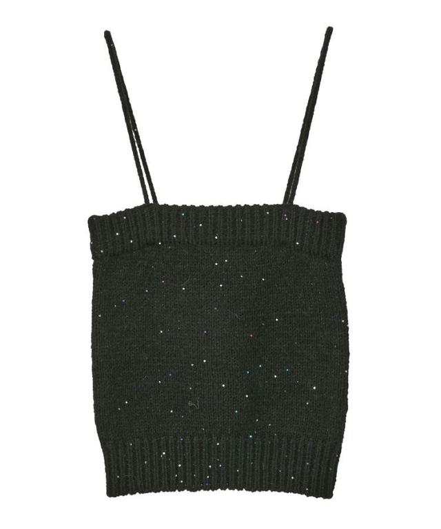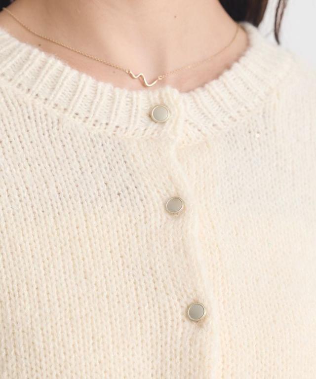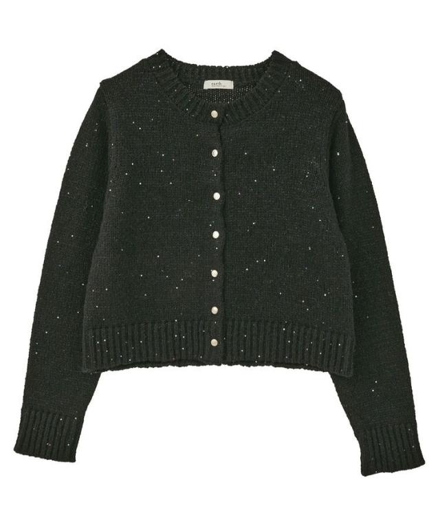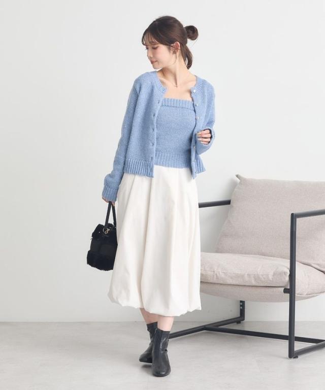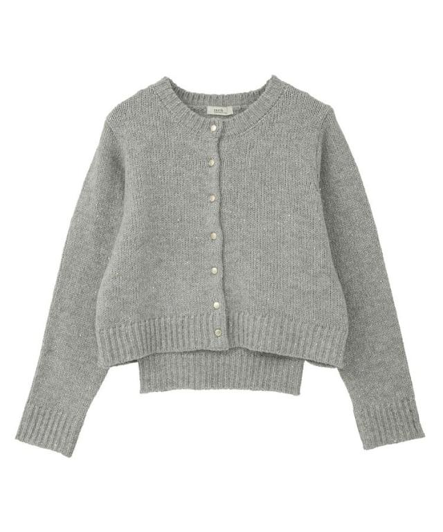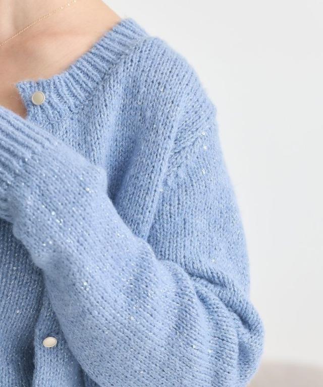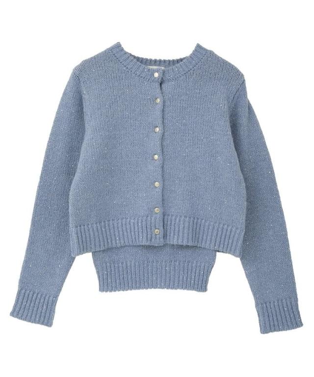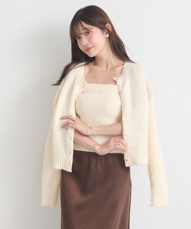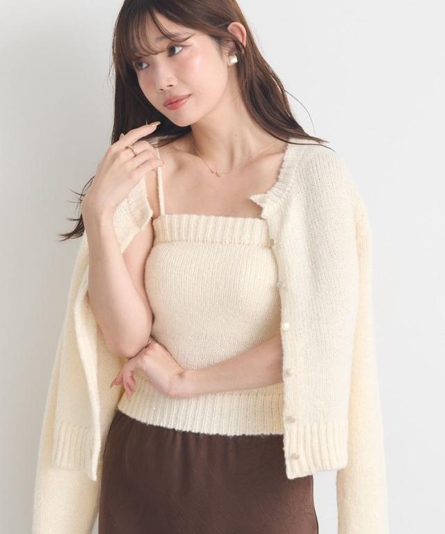 小さなフラワースパンコールがキラリと光るラメニットカーディガン。華奢なビスチェトップをセットにしたフェミニンなコンビネーションが魅力です。クラシカルなメタル風ボタンを合わせた品のある雰囲気もおしゃれなポイント。こなれ感あるスクエアフォルムでボトム合わせしやすく、それぞれ単体でも活躍してくれる使い勝手の良いアイテムです。透け感[ややあり]