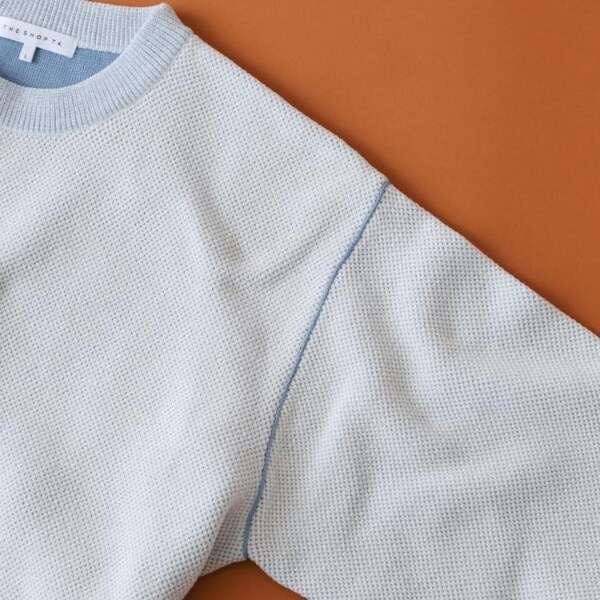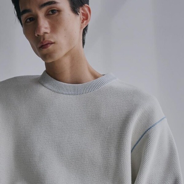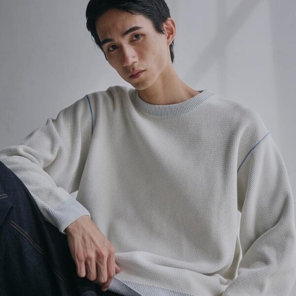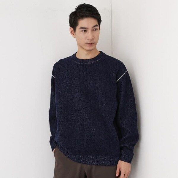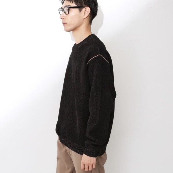カノコ編みならではの立体感と、モール素材の柔らかな風合いを兼ね備えたニット。