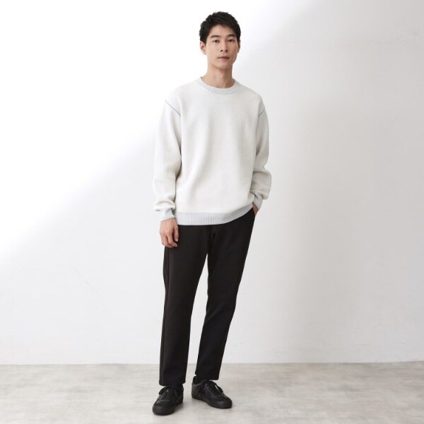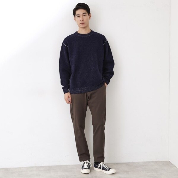 カジュアルなデニムと合わせればリラックス感のある大人カジュアルに、スラックスと組み合わせればキレイめなスタイルにもマッチ。