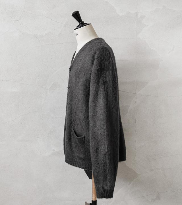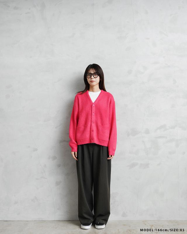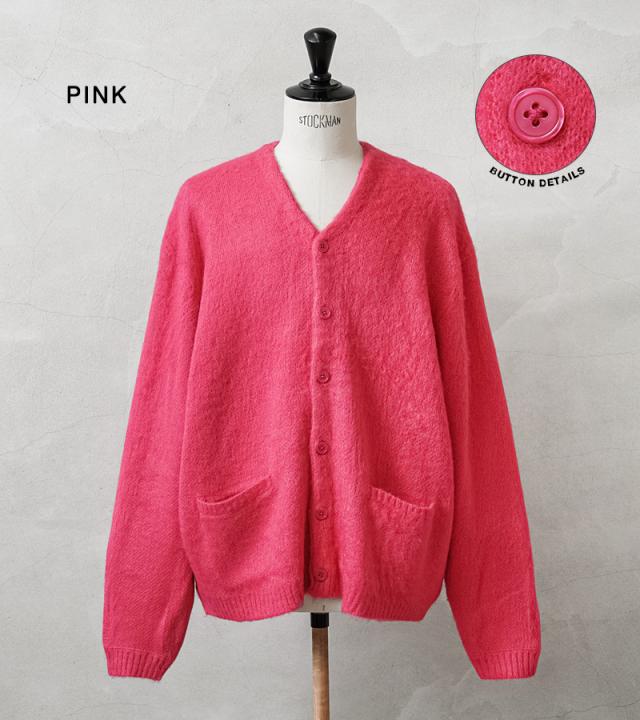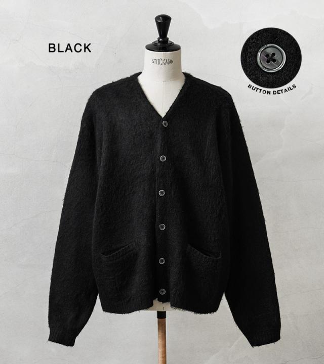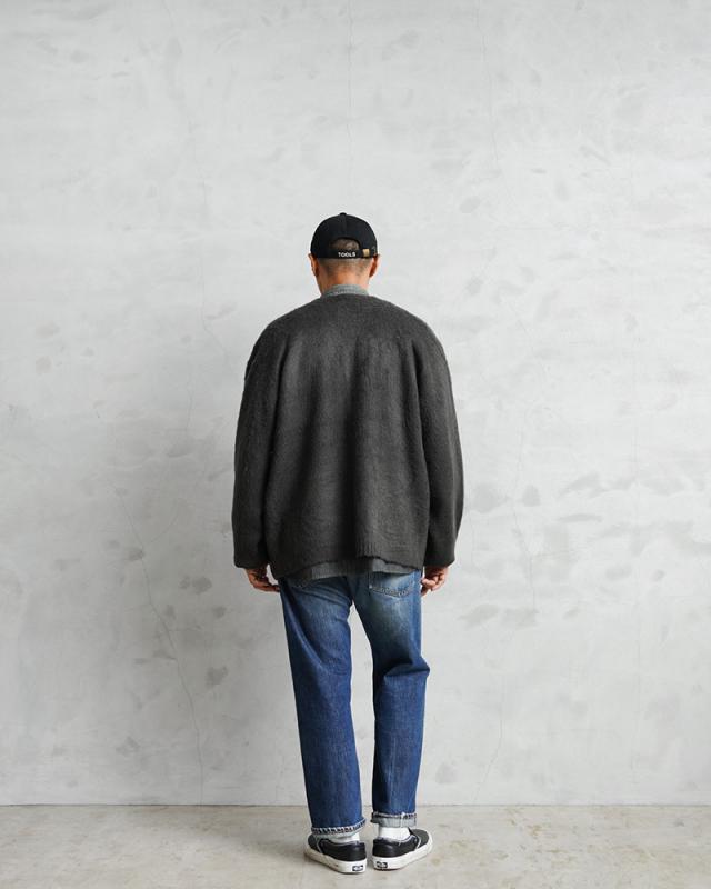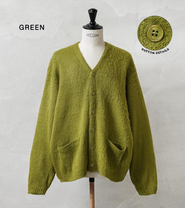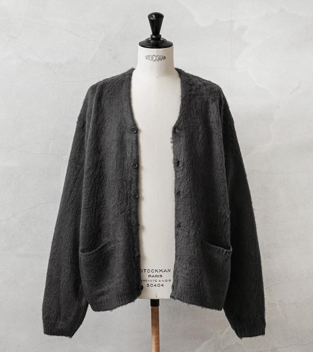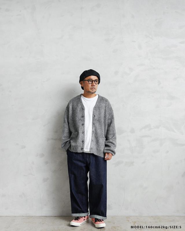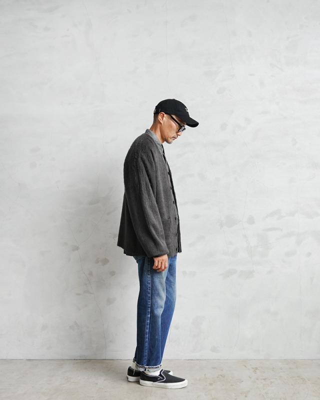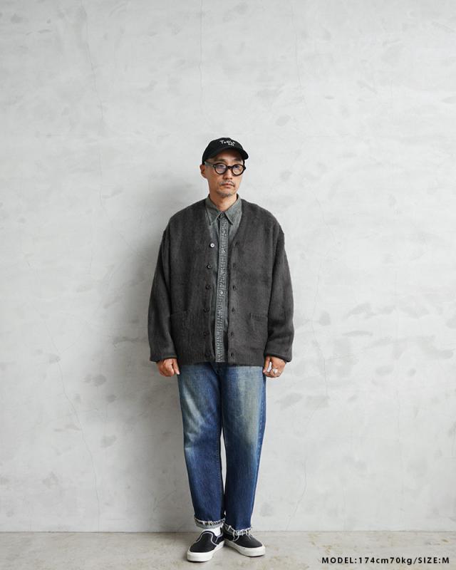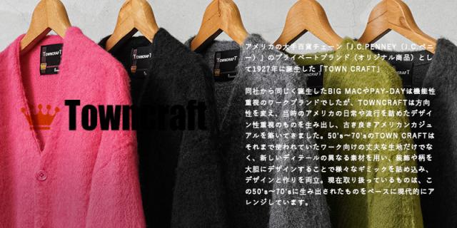 アメリカの日常をもとに新しいトレンドを生み出してきたTOWN CRAFTから、1960〜70年代のアーカイブをアップデートしたカーディガンが登場。ボディはアクリル糸をダブルジャガード編みすることで、程よい厚みのあるしっかりとした編み地に仕上げています。さらに縫製後、編み地の表面をひっかくシャギー加工を施すことで、毛足の長いモヘア調になり繊細で柔らかな印象を与えてくれ、アクリル素材なのでお手入れも簡単。ガシガシ洗濯を繰り返すことで生まれる風合いはこなれ感と、まるでヴィンテージのような深い雰囲気になっていくのを楽しむことができます。首元をすっきりと見せ、インナーが映えるバランスの良いVネック、思わず両手を突っ込んでしまいたくなるベストな位置の両ポケット。ザックリと着こなせる落感のあるシルエット。
