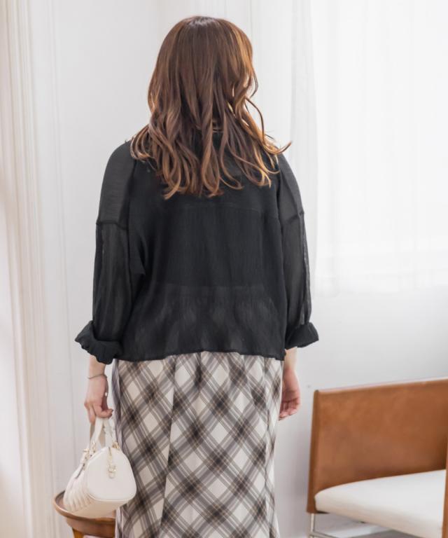 大きいサイズ/レディース/3L/4L/ショート丈クレープシアーシャツ