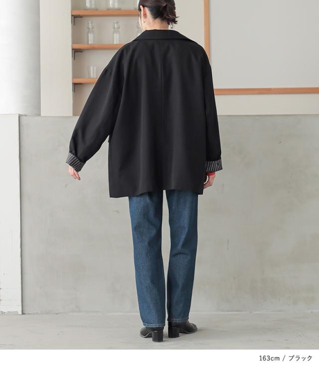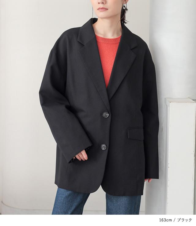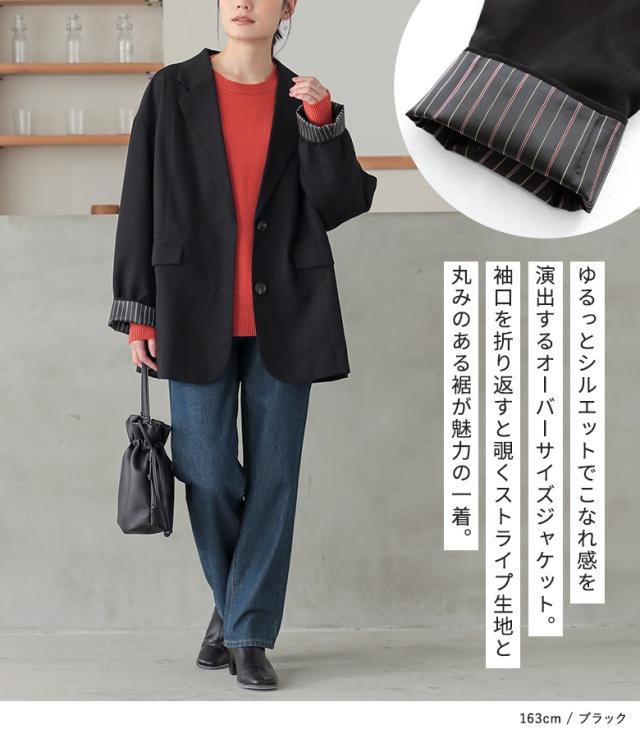 『オーバーサイズテーラードジャケット』【メール便不可】【30】[テーラードジャケット 長袖 レディース アウター ライトアウター 羽織 無地 オーバーサイズ 裏地 ストライプ柄 ポケット 秋 春]