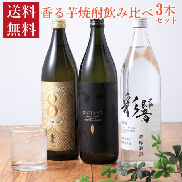 焼酎 香る芋焼酎 3本 セット 900ml 飲み比べ 霧島No.8 だいやめ 彩響 芋焼酎 焼酎セット 瓶 送料無料 ギフト