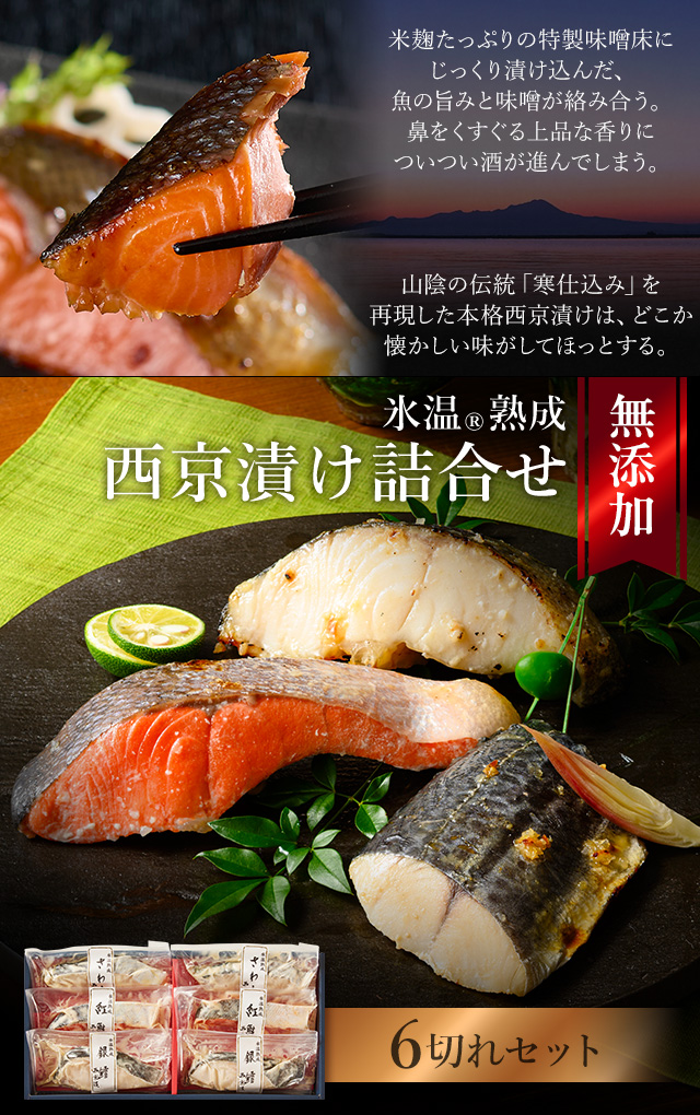 銀だら入り 西京漬け 詰合せ(銀だら・さわらほか6切入) 氷温熟成 無添加 漬け魚 プレゼント ギフト 送料無料(北海道・沖縄を除く)