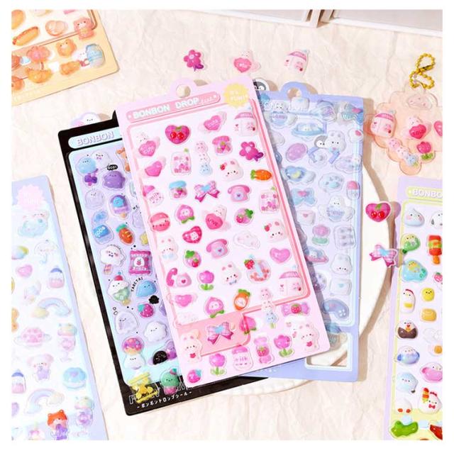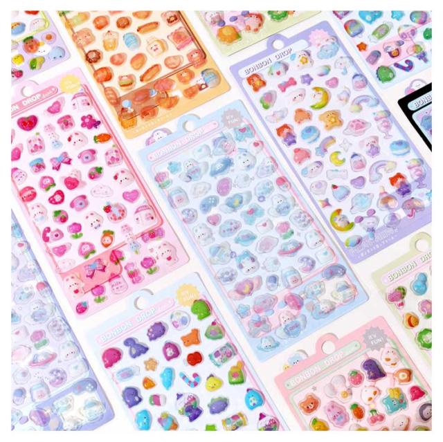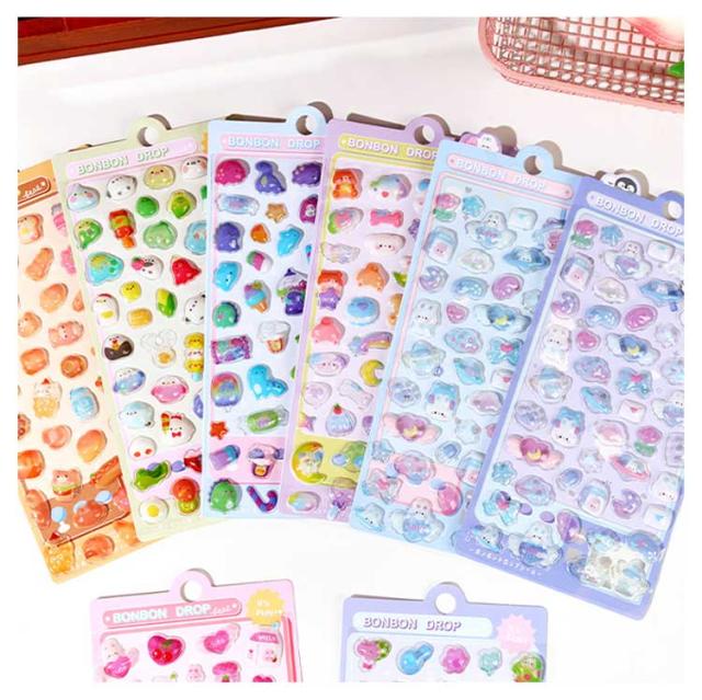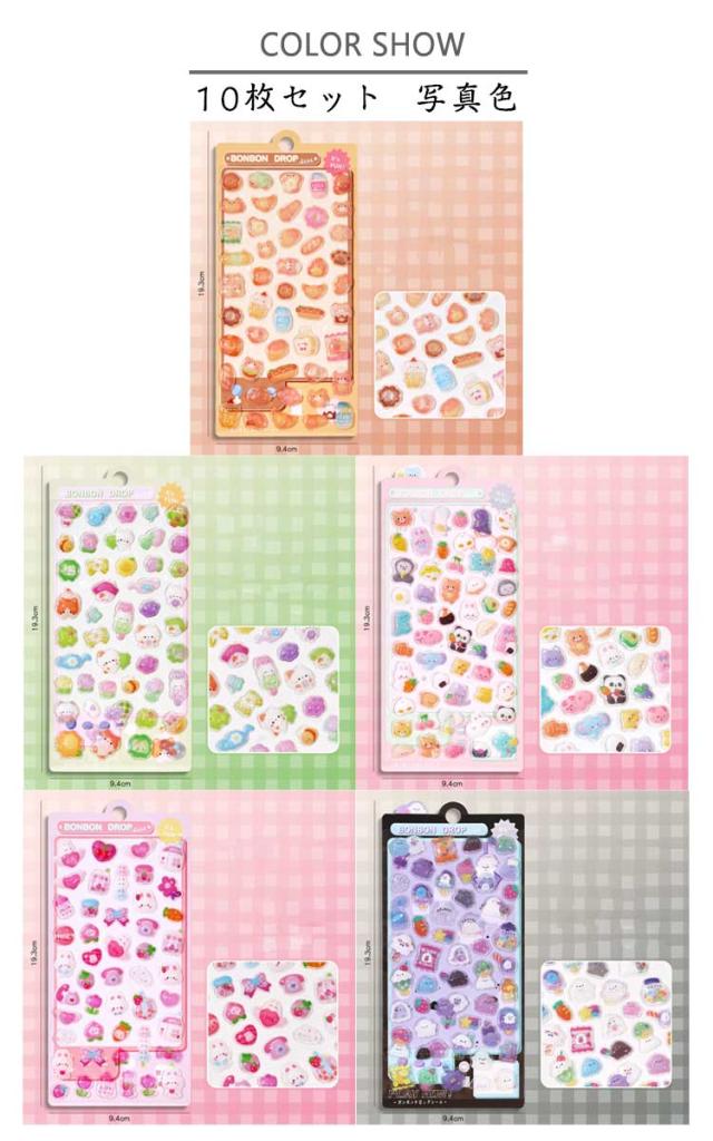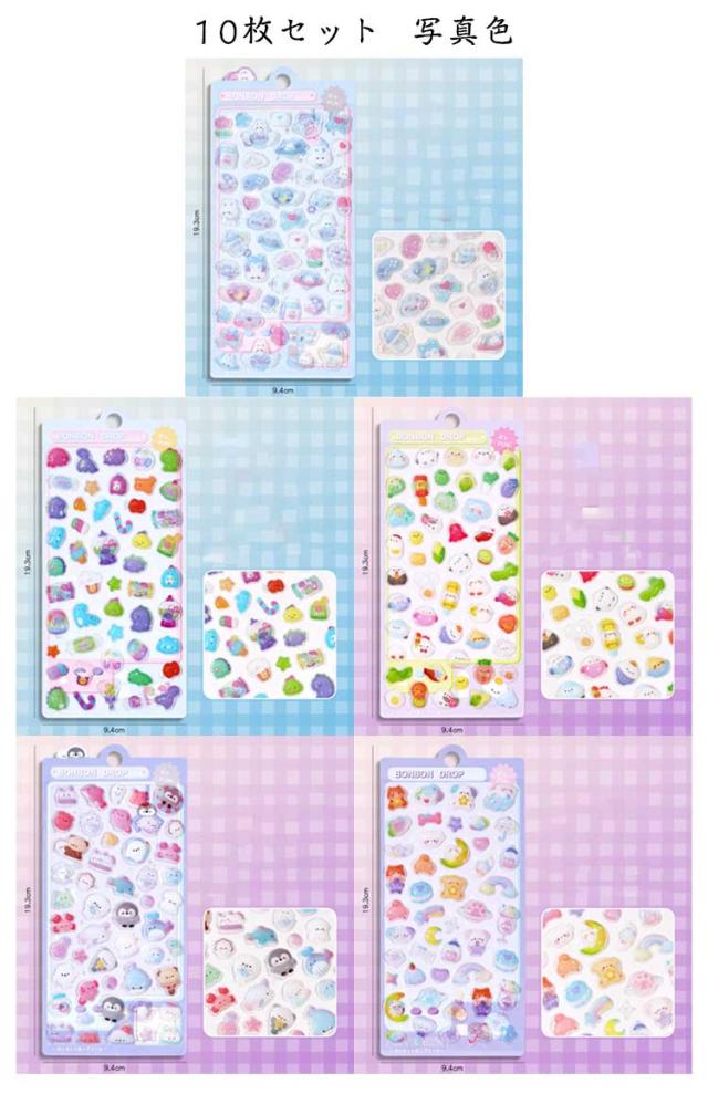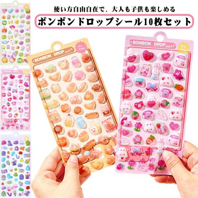 10枚セット 10枚セット 3Dデコシール DIY用 ご褒美シール ステッカー 装飾用 ぷくぷくシール 立体シール 手帳 日記帳用 手帳用 可愛い スマホケース飾り シール DIY用 キラキラ 貼り付け可能 手芸用品 贈り物 手作り カレンダー