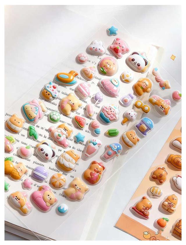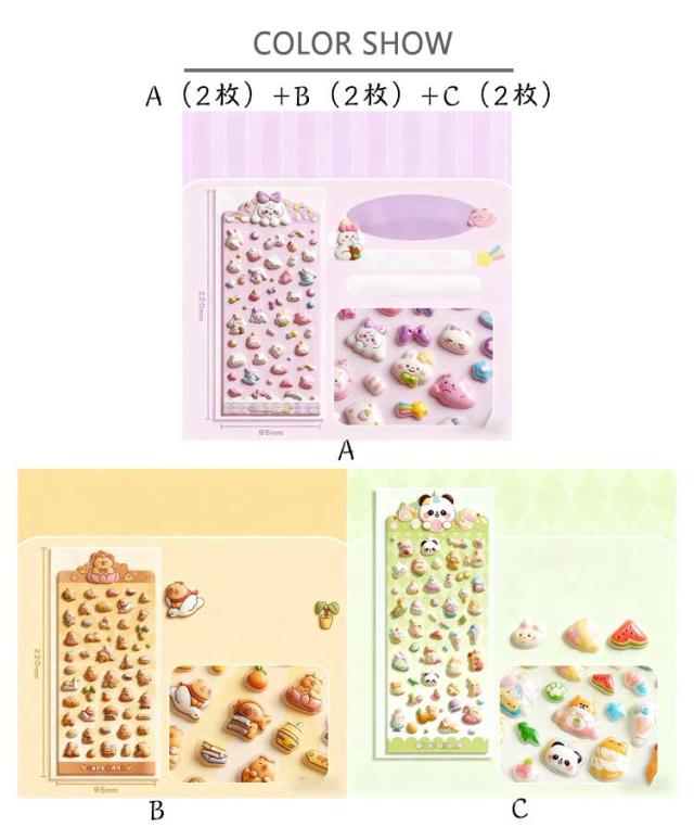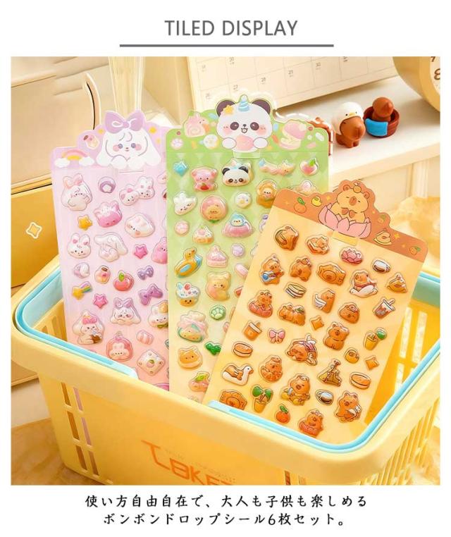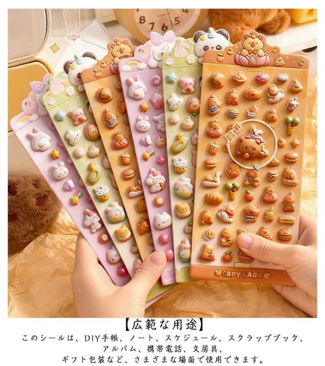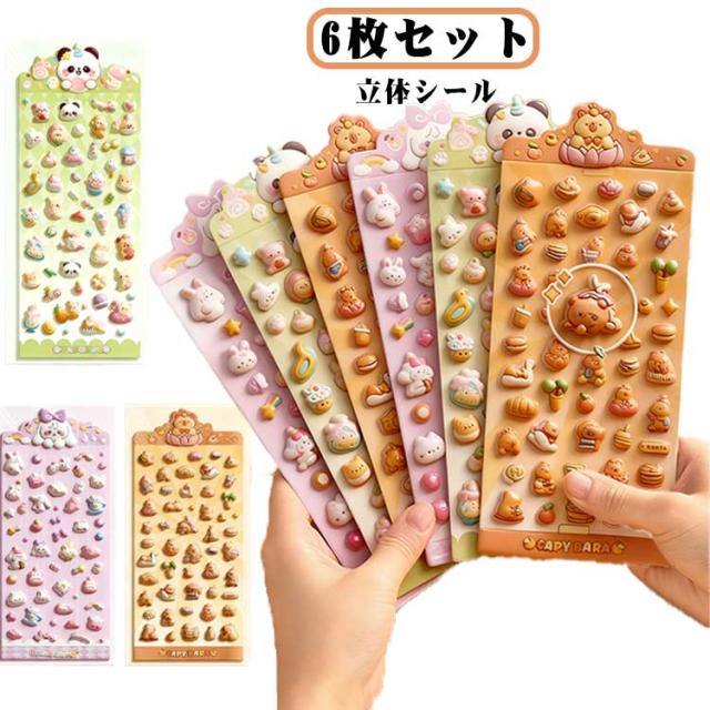 スマホケース飾り 手帳 6枚セット 3Dデコシール ぷくぷくシール DIY用 装飾用 ステッカー アルバム キラキラ 手帳用 シール ご褒美シール 贈り物 可愛い DIY用 日記帳用 貼り付け可能 手芸用品 立体シール 手作り カレンダー 日記シール